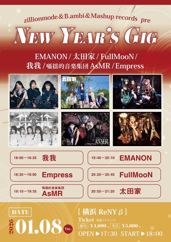 出演: EMANON / 我我 / 太田家 / 囁揺的音楽集団AsMR / FullNooN / Empress