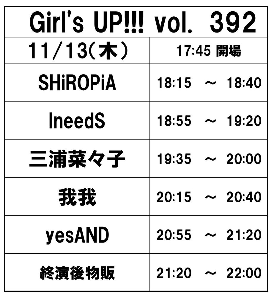 出演:三浦菜々子/ yesAND / IneedS / SHiROPiA / 我我